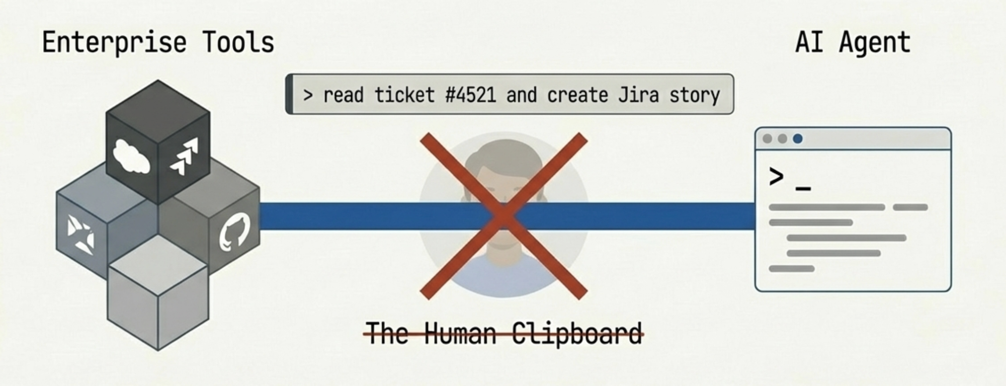 我從聊天客戶端搬到了 Cursor 和 Claude Code。不再把 support case 複製進聊天視窗了,我可以直接說「讀這張 Zendesk ticket 然後建一張 Jira story」,agent 會透過 Zendesk 整合讀 ticket,透過 Jira MCP tool 建 story,直接填入欄位。沒有剪貼簿。沒有複製貼上。