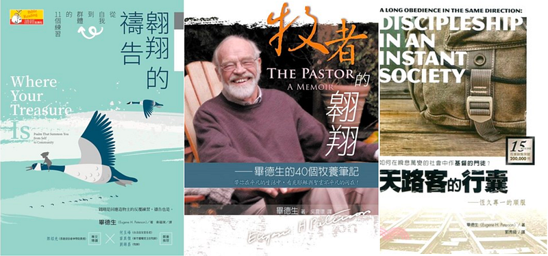 2. 三本畢德生的書:翱翔的禱告、牧者的翱翔、天路客到行囊。第一本書提醒我們禱告中的社會元素,幫助我們不被自己的情緒困住,而是看見更豐富的禱告面向。第二本書充滿著溫暖的故事,讓我們記得生命中真正重要的到底是哪些事情。第三本書幫助我們釐清「靈性」這個字真正豐富的意涵,而不讓我們被消費主義的靈性綁架,反而失去靈性生命能夠給予的豐富資源。