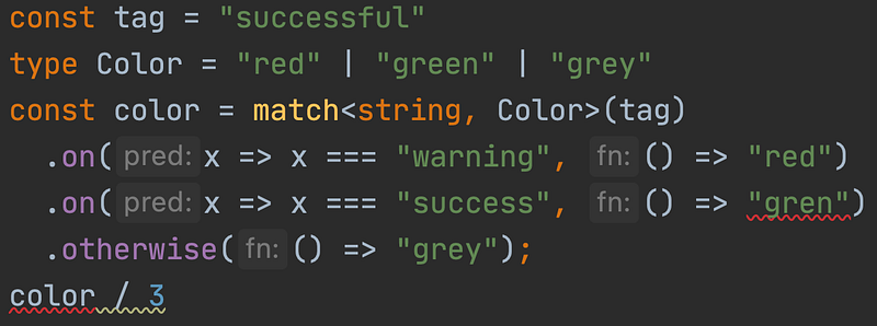 Now, we can rewrite our code:const color = match(tag)
